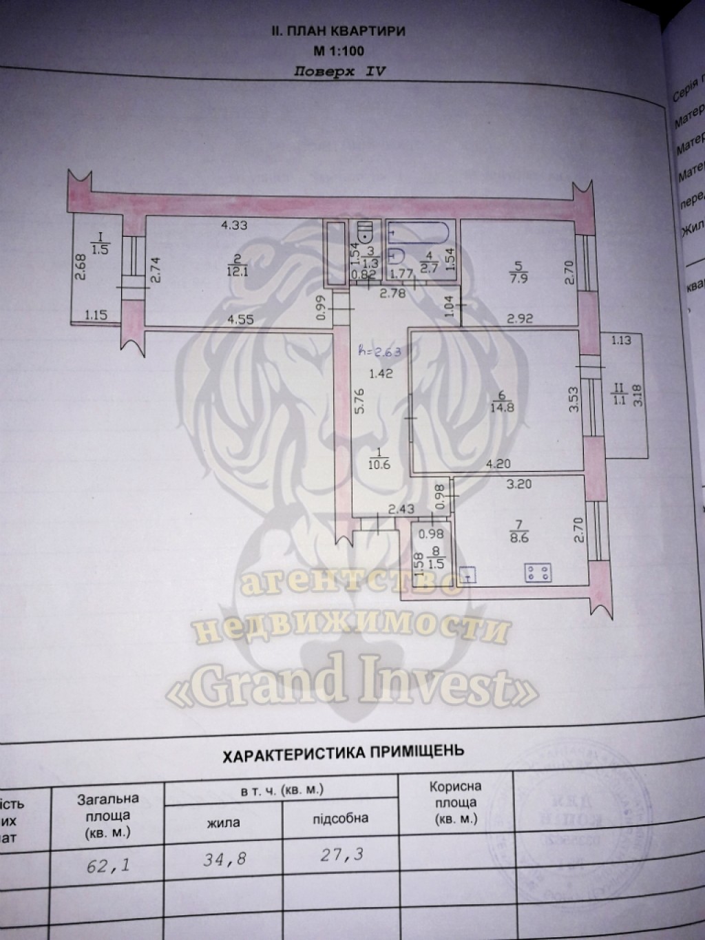 Общая площадь: 62