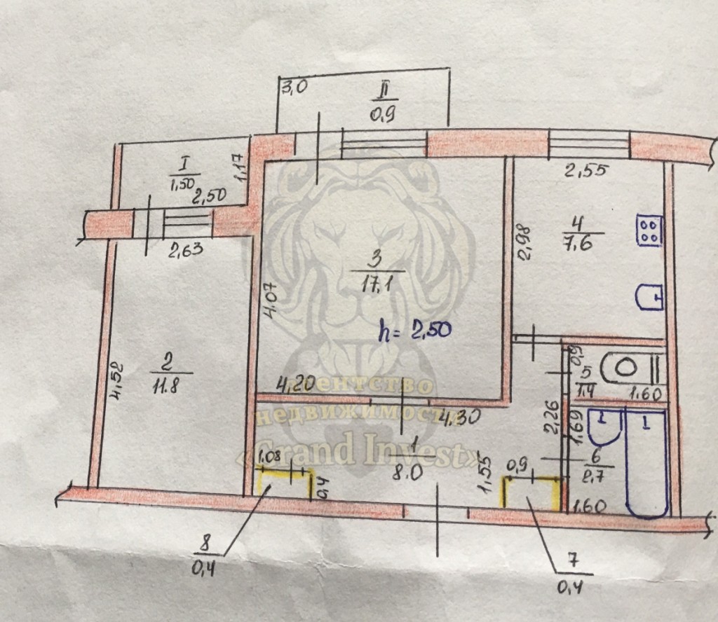 Площадь кухни: 8