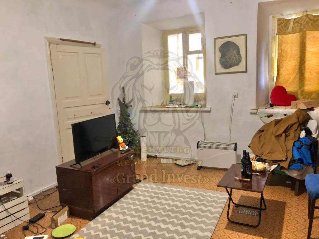 Старый фонд. Этаж цокольный, углублённый на 1м, но квартира светлая и сухая, стены толщиной до 90 см. Летом не жарко, зимой не холодно. Потолок - 2,65 м. В обеих комнатах (4х4м и 2х3,75м) по два окна, кухня 8м. Все удобства. Счётчик на воду. Железная дверь, решётки на окнах. Трубы пластиковые. Подвал имеется - вход со двора. Кладовка-сарайчик размерами примерно 2 х 1,5 м. Есть возможность организовать вход с улицы (под офис, магазин, бар, студию, ломбард, массажный или стоматологический кабинет).