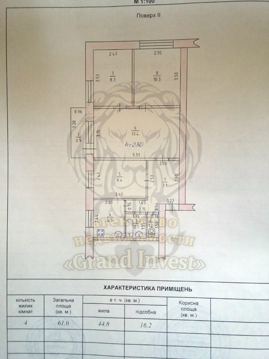 Общая площадь: 61
