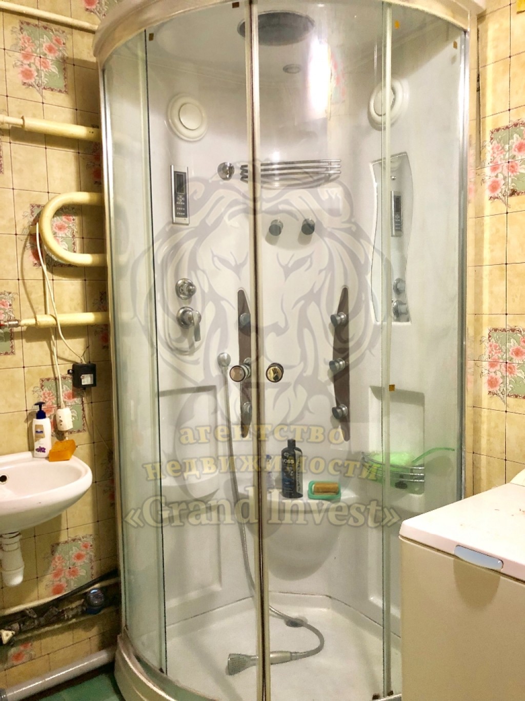 Кухня и санузел посредине квартиры, комнаты по бокам, С/У совмещен, установлена душевая кабина, для нагрева воды установлен электрический бойлер.