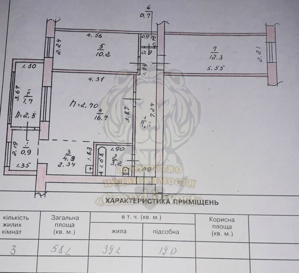 Общая площадь: 58