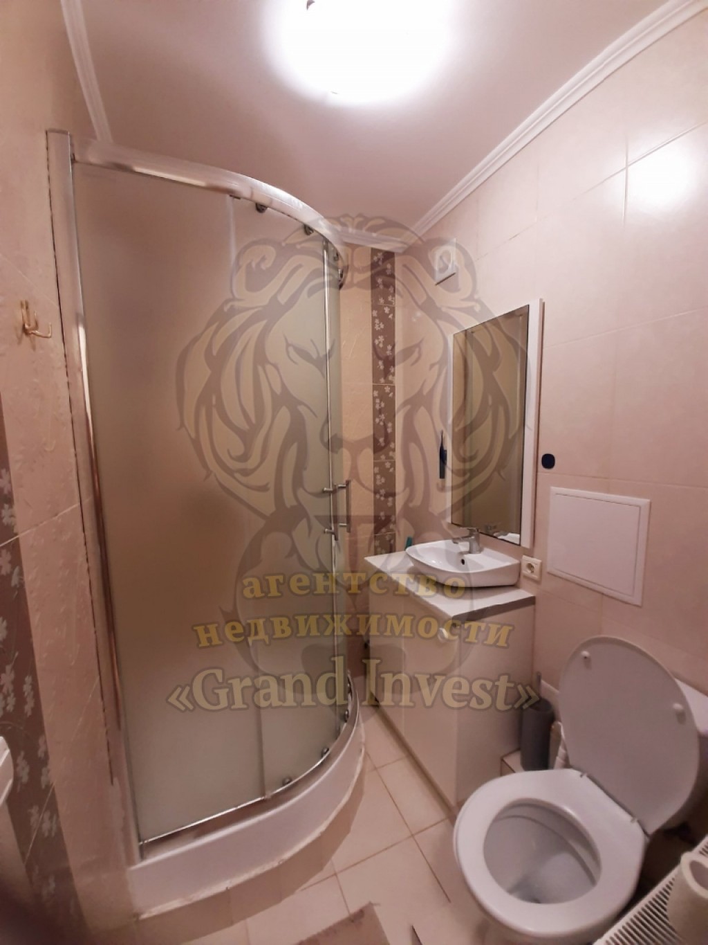 Смежный санузел с душевой кабиной.