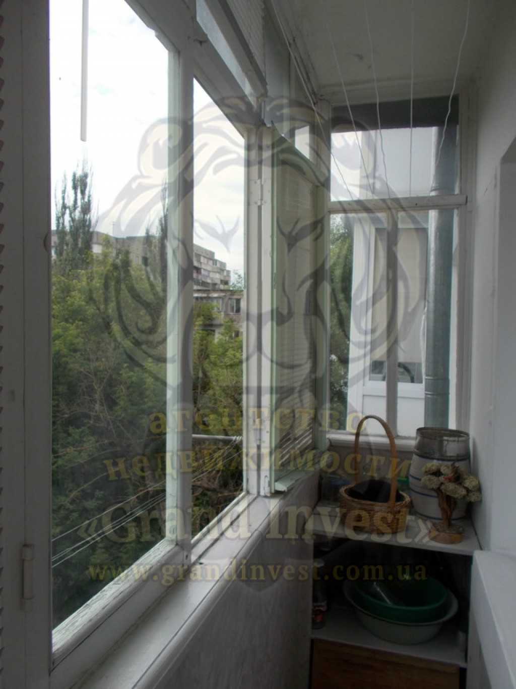 Балкон застеклённый, выход с большой комнаты.
