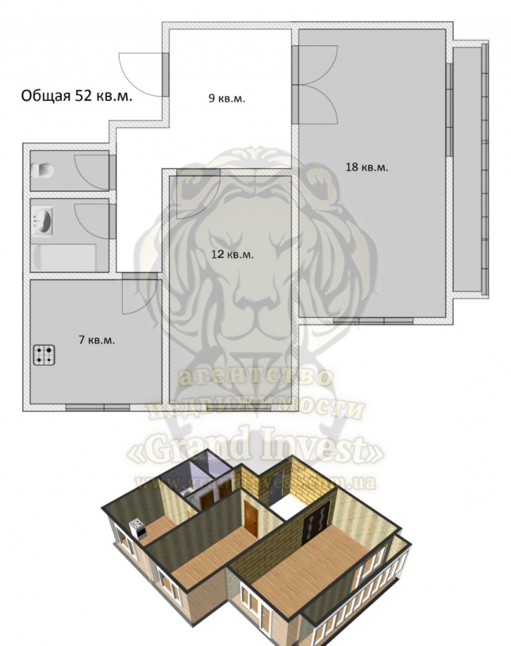 Общая площадь: 52